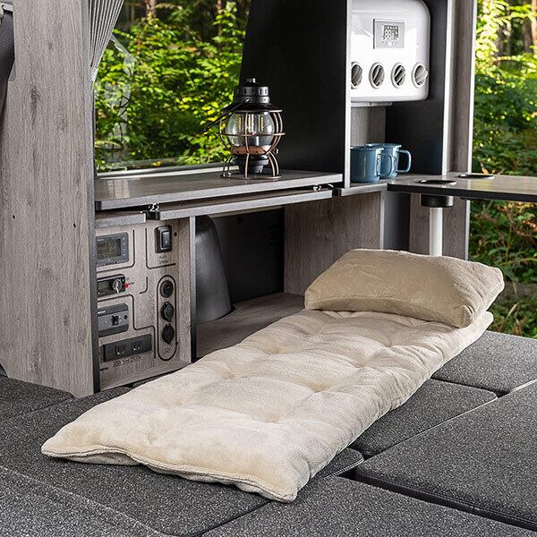 業界初の「燃えない」マイヤー毛布素材を使用した、マットクッションです。焚き火やストーブのそばでも安心して使えますので、キャンプやアウトドアに最適。収束型のチェアにセットすれば、頭からお尻まで優しく包まれ、快適な座り心地です。さらに、コットに敷いてリラックスマットに、床に広げて簡易ラグとしても使えるマルチユース仕様。汚れても洗濯できますので、いつでも清潔に使えます。マイヤー毛布素材ならではの、ふんわりとろけるような肌触りで、キャンプからご自宅まで、極上のリラックスタイムをお過ごしください。